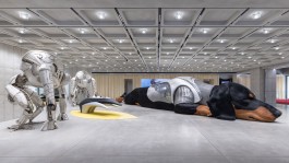 L’architettura brutalista e futuristica, le installazioni artistiche immersive, gli elementi cinetici e surreali, come l’iconico bassotto robotico che domina lo spazio nello store Tamburins, trasformano l’edificio in luogo da esplorare piano dopo piano. Ogni area è pensata per essere “instagrammabile”, ma non in modo superficiale. Lo spettacolo visivo e sensoriale è parte integrante dell’identità del brand. Un approccio che Gentle Monster ha perfezionato negli anni, diventando uno dei riferimenti in assoluto più rilevanti di experience design applicato al retail.